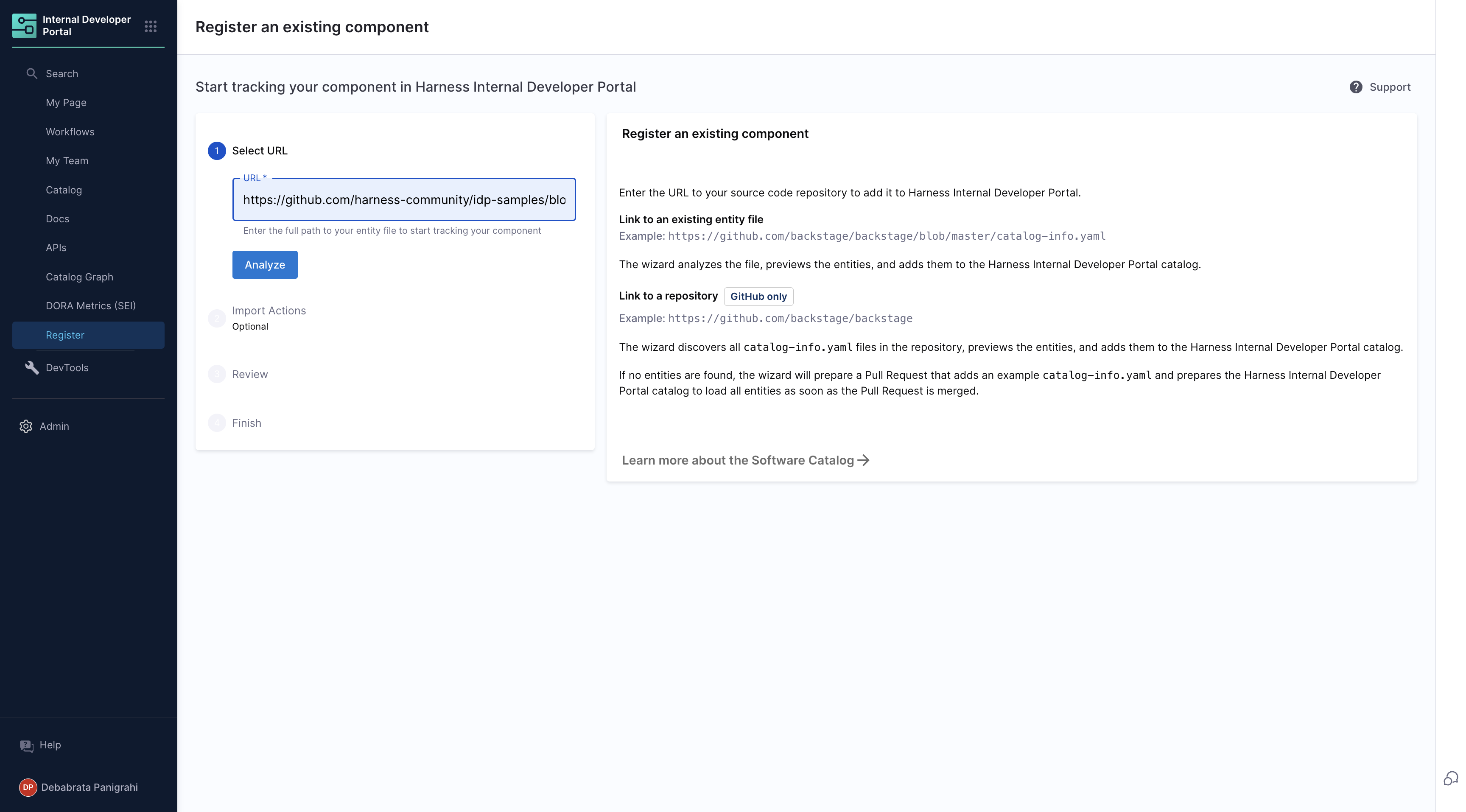 - Navigate to the Catalog page in Harness IDP.
